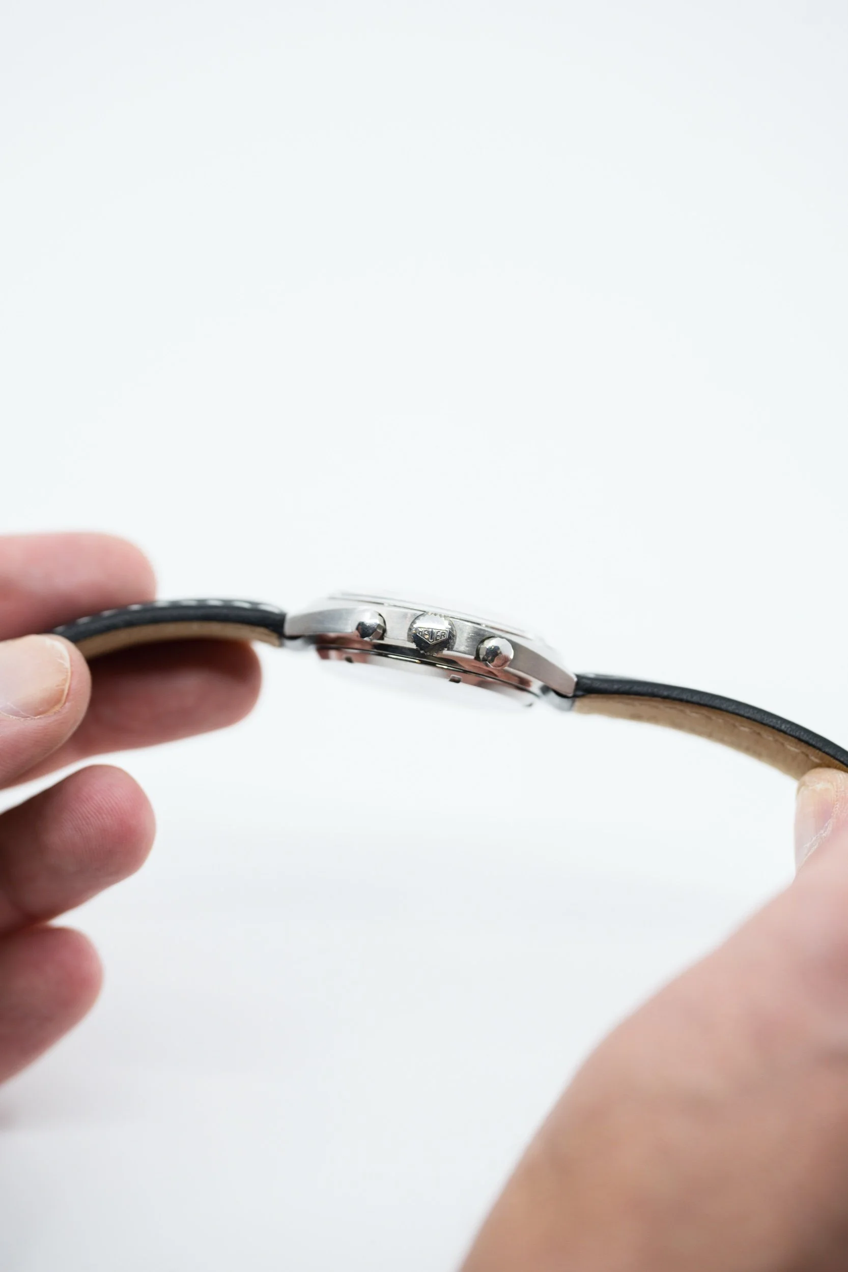 The Heuer Carrera 73353, introduced in the early 1970s, is one of the most sought-after vintage chronographs among collectors. Part of the legendary Carrera line, this model stands out with its sleek cushion-shaped case, dual sub-dials, and robust Valjoux 7733 manual-wind movement.